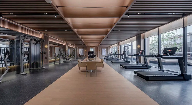 跑步机:作为健身房中最基础也是最受欢迎的有氧运动设备之一,跑步机适合各种体能水平的员工,用于提高心肺功能、燃烧脂肪。