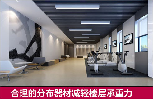 2.楼层的承重,健身房装修分区域的时候一定要注意楼层的承重问题,一些较大的器材对于楼层的压力很大。